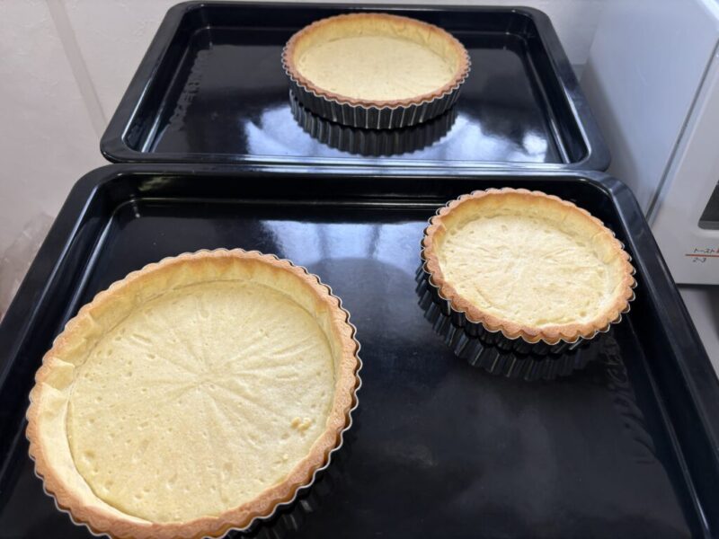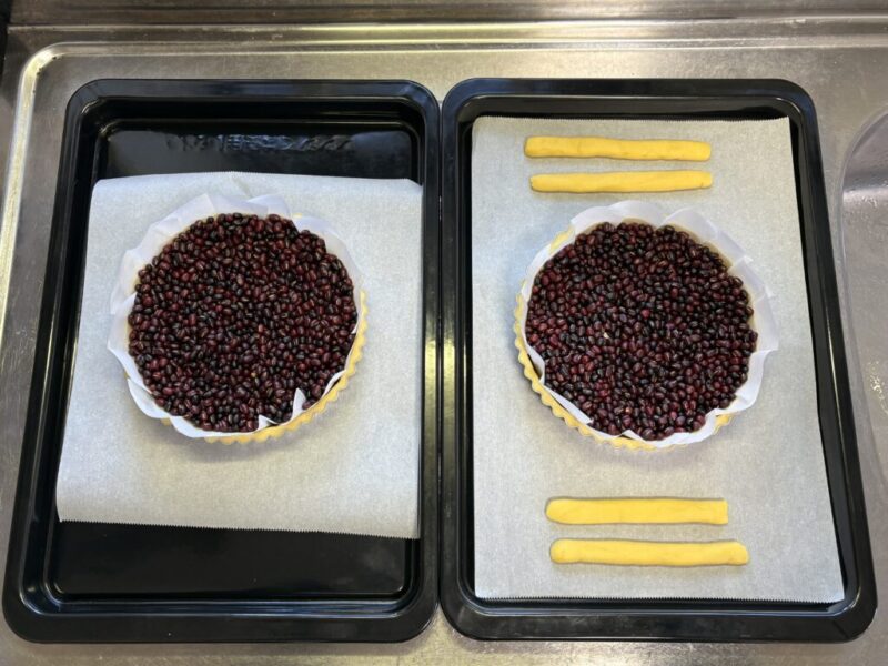 上の1枚目の写真は以前作ったタルトの写真です。重しの小豆をのせた写真が今回は撮り忘れてしまったもので。