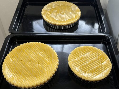 タルト生地といえば必ずピケするものだと思い込み、エンガディナーを作るたび、ピケをフォークで打ち込んでいたので、毎回キャラメルが底のピケした穴から少しだけ漏れ出ていましたが、あまり気にしていませんでした。