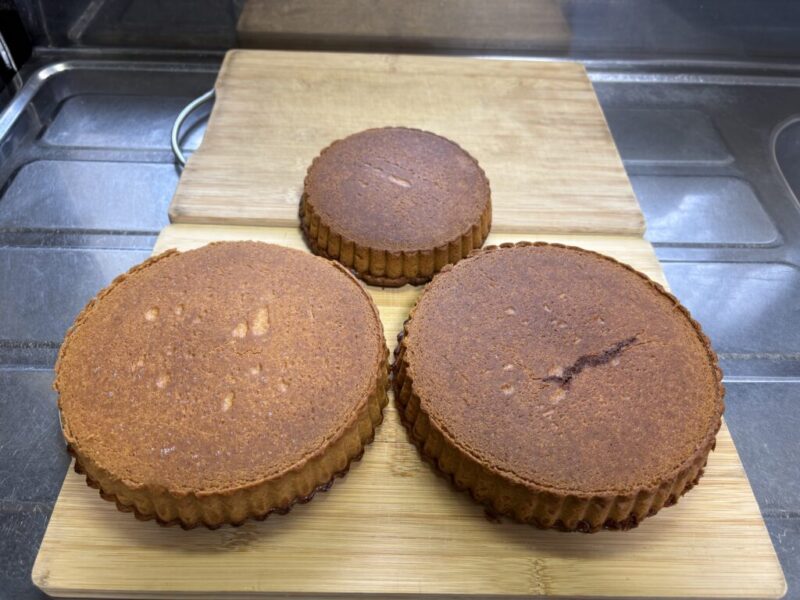 2枚目の写真は今回のです。直径18cm2台分の配合で、余り生地を使って、直径13cmがもう1台できてしまいました。