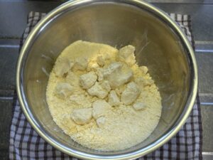 そして大きめのボールに移す。ここではまだ粉末状です。