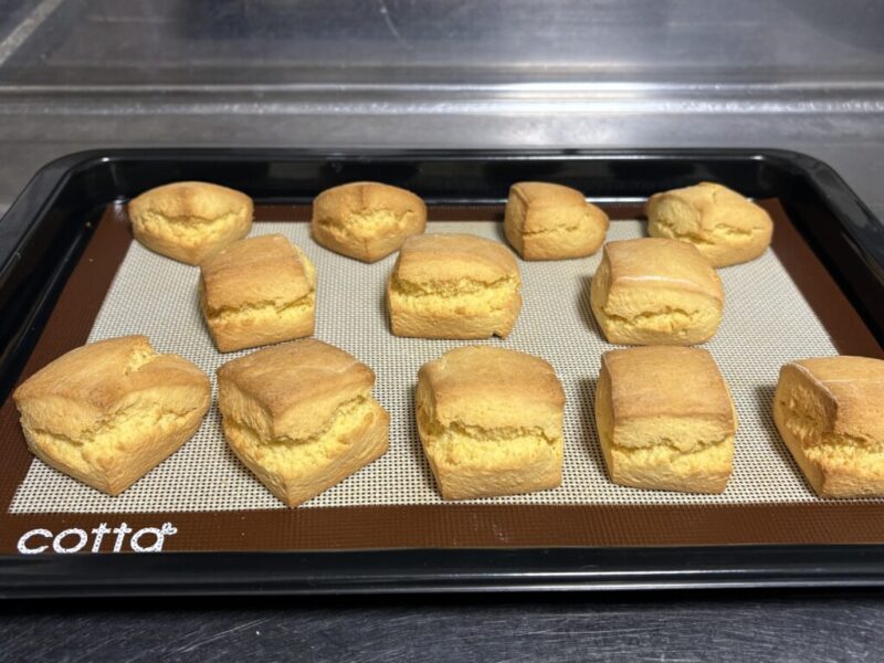 前回もオススメした「シルパン」を敷いた天板にスコーンを並べ、180℃で18分ほど焼きます。