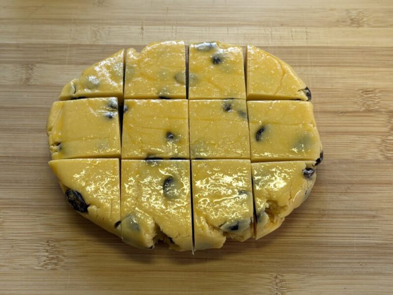 まな板プレスとは、本来なら生地を麺棒で延ばすところを、まな板2枚で挟んでいっきに伸ばしてしまおうという時短必殺技です。「まな板プレス」「お尻プレス」が生まれた伝説の回はこちら「ショートブレッド