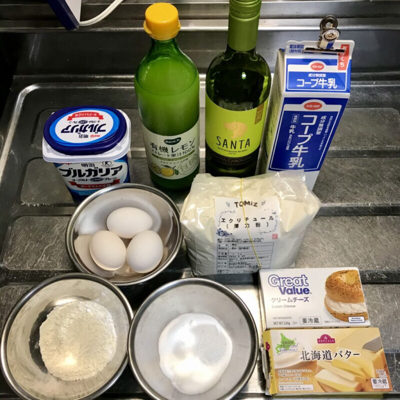 製菓・製パン材料の専門店 クオカ(cuoca)の「ふんわりスフレチーズケーキ」カスタードクリームを混ぜる変わった配合にチャレンジ。