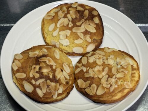 ホットケーキをそのまま食べると若干むせるけど、これはシロップが染み込んで、アーモンドクリームの油脂分もあって食べやすいです。